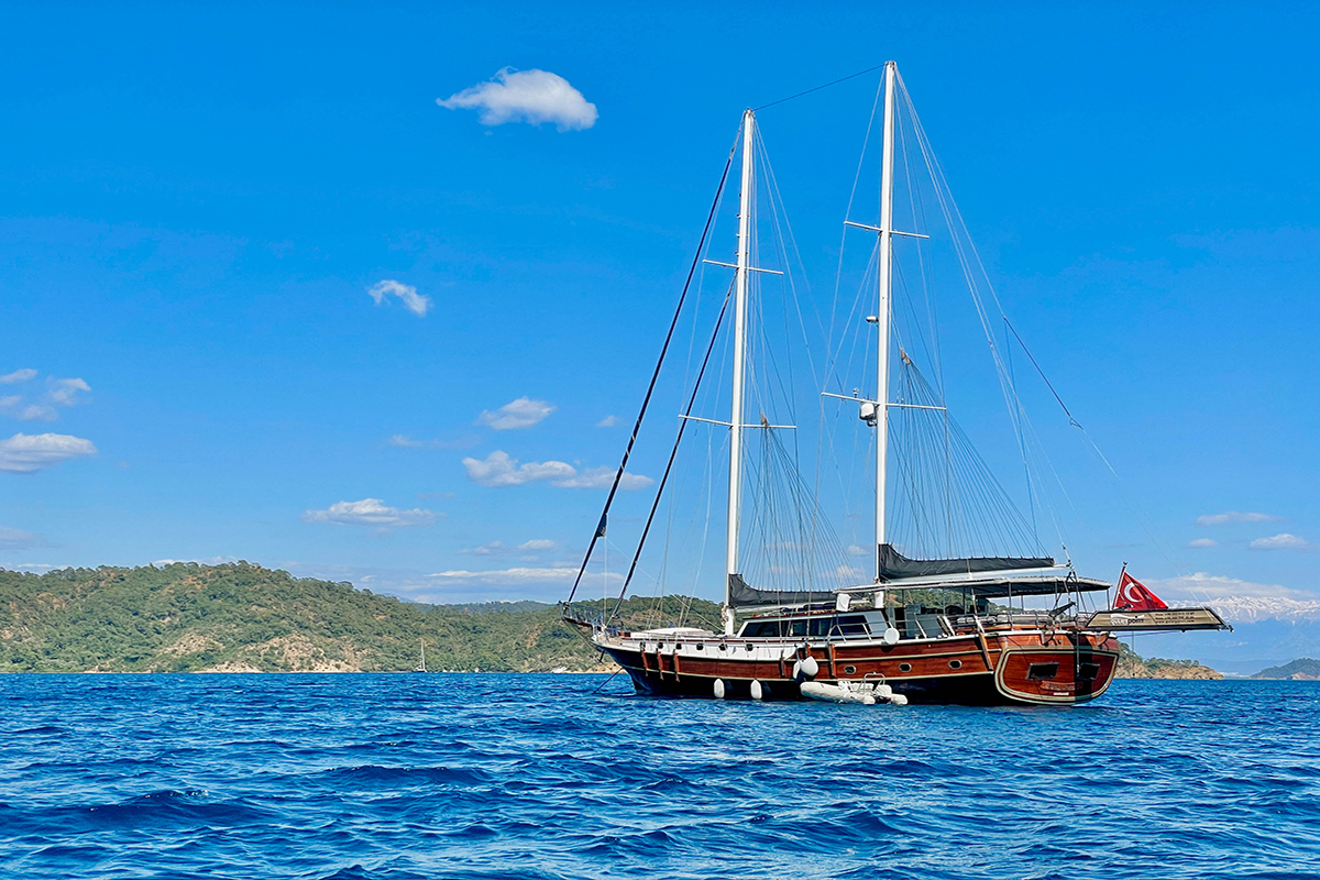 Personal assistant, yacht charter, port and mooring fees in Turkish waters, entry and exit formalities in Turkish waters, air conditioning, fresh water, crew, yacht insurance and fuel (average 110 nautical miles cruising per week).