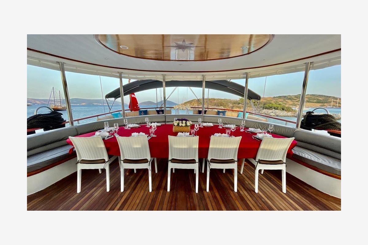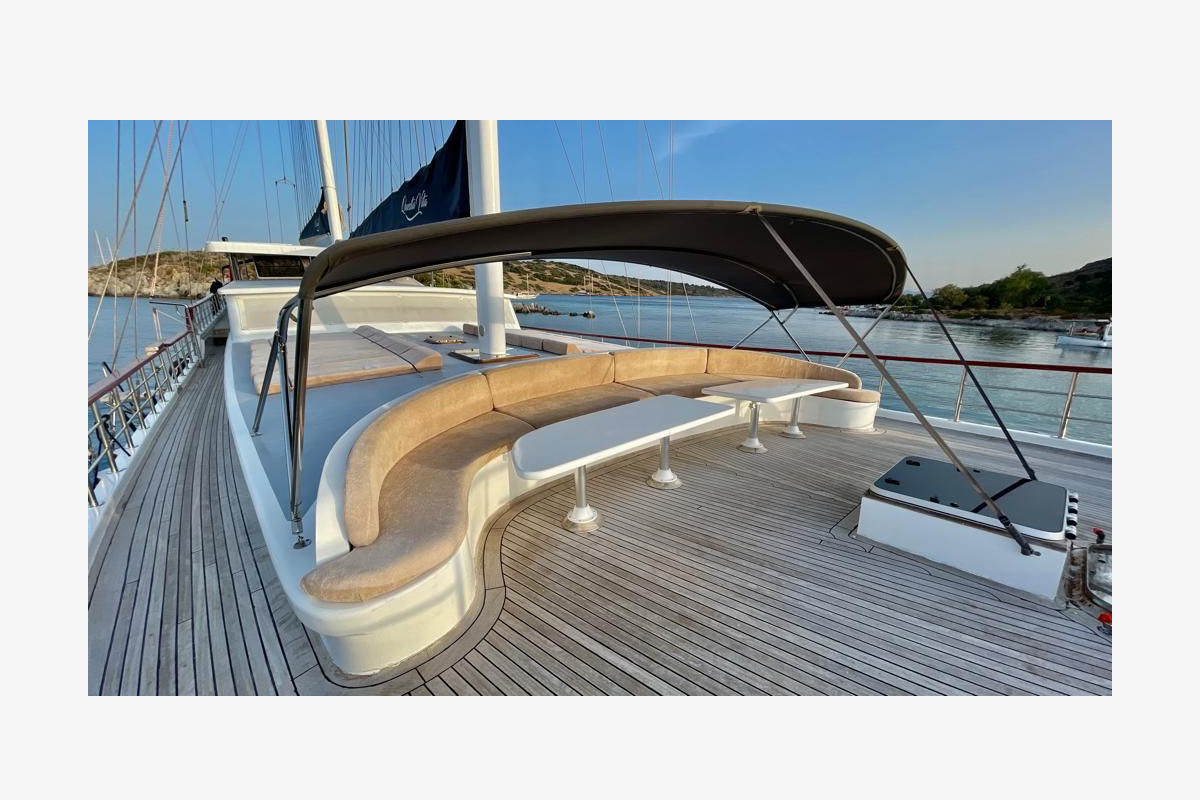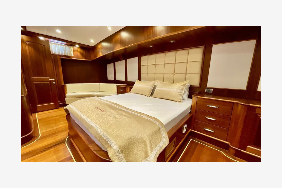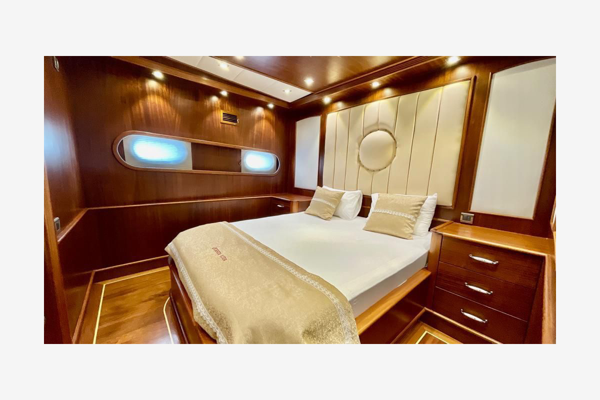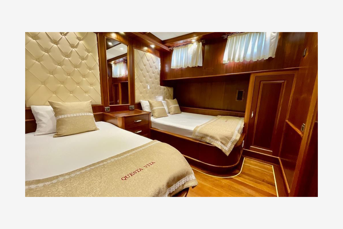 The Questa Vita yacht Newly built in 2021, consists of 2 master, 2 double and 2 triple cabins and can accommodate up to 12 people. All cabins and living areas are air-conditioned. She is 33 meters long and 8.5 meters wide, has very comfortable living spaces. Provides blue cruise service with a crew of 5.