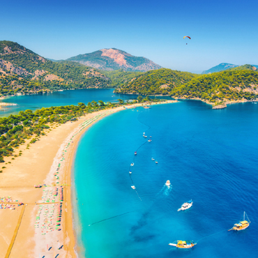 Ölüdeniz is a beautiful inland bay that famed for being one of the world's most beautiful yacht charter destinations. With high mountains sweeping down to the shore and golden sand, this lagoon is a scenic wonder.