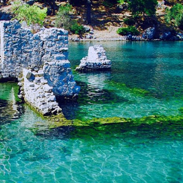 Tersane (Shipyard) Island is where you’ll find ancient ruins around the creek from the Byzantine time. It is the largest island of the Fethiye Gulf. During the era of the Ottomans, the area was used as a shipyard and you may see the remnants of the shipyards.